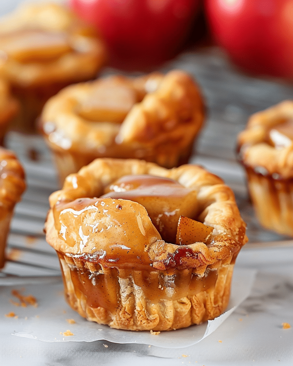 Refrigeration: For longer storage, place the apple pie cups in an airtight container and refrigerate for up to 4-5 days. When ready to serve, you can reheat them in the microwave for about 15-20 seconds or in the oven at 350°F (175°C) for 5-10 minutes to refresh the flaky crust.
