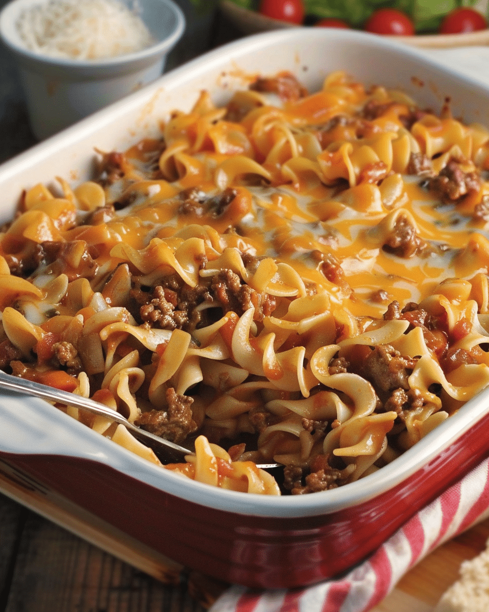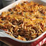 Amish Country Casserole is a comforting, homestyle beef and noodle bake that brings together tender egg noodles, seasoned ground beef, and a creamy tomato sauce. Perfect for a cozy family dinner, this easy casserole recipe is packed with rich flavors and is sure to become a new favorite in your home. With simple ingredients like ground beef, egg noodles, and a creamy sauce, this dish is the perfect weeknight meal. Serve it with garlic bread and a side salad for a complete and satisfying meal that everyone will love!