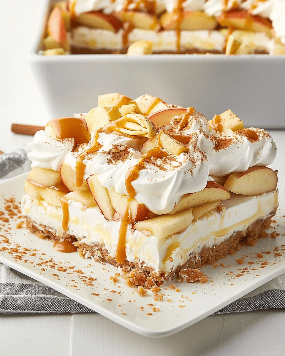 Apple Delight is rich and indulgent, so slice it into small squares to serve. Each 9×13-inch dish typically yields 12 servings, but feel free to adjust portions to fit your crowd.