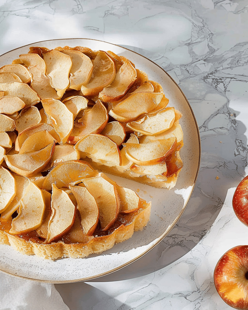 The caramelized apple topping is rich and indulgent, perfectly balancing sweetness and a hint of tartness.