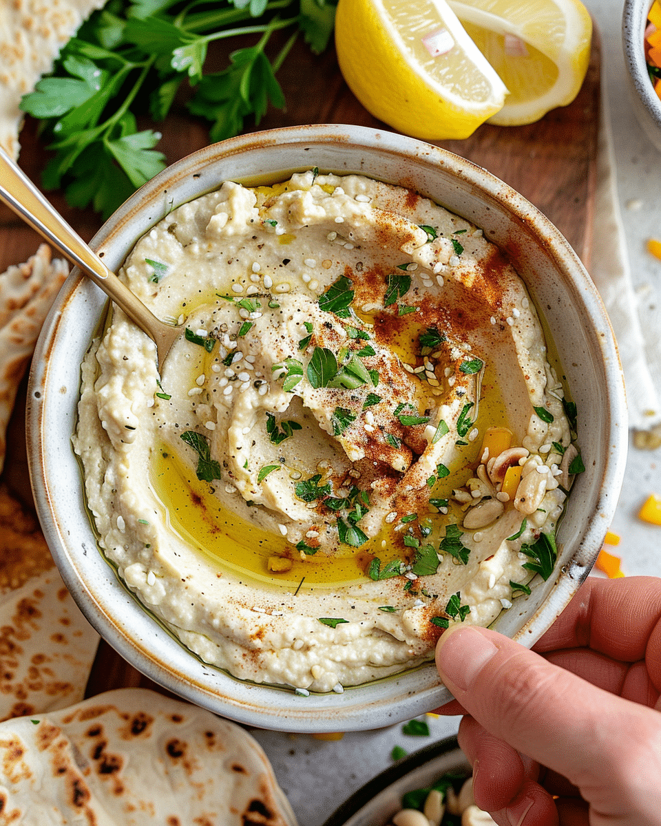 When I want a twist on the classic, I sometimes add a roasted red pepper for sweetness and color. For a spicier kick, a pinch of cayenne or chopped chili does the trick. If I’m going oil-free, I simply skip the drizzle on top and blend everything with just tahini and lemon. And when I’m craving extra creaminess, I add a spoonful of Greek-style plant-based yogurt.