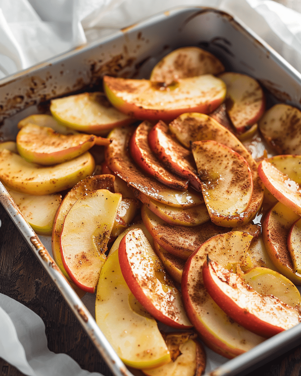 Arrange on Baking Sheet: Spread the coated apple slices in a single layer on the prepared baking sheet, ensuring they don’t overlap.