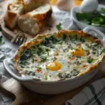 There are so many ways I like to change things up depending on what I have in the fridge. Sometimes I add a sprinkle of shredded mozzarella or Gruyère instead of Parmesan. For a smoky flavor, I’ll stir in some crumbled cooked bacon or smoked salmon to the spinach. If I want to make it dairy-free, I skip the cream and use a splash of coconut milk. And for extra texture, a layer of sautéed mushrooms beneath the spinach works beautifully.