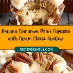 These Banana Cinnamon Pecan Cupcakes with Cream Cheese Frosting are incredibly moist and packed with warm cinnamon, crunchy pecans, and sweet mashed bananas. Topped with a rich and tangy cream cheese frosting, they offer the perfect balance of flavors. Ideal for any occasion, these cupcakes are easy to make and absolutely delicious!.