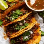 Flavor-packed and irresistibly tender, these Birria Tacos with Homemade Consommé are made with slow-cooked beef simmered in a rich, chili-infused consommé. I dip crispy, cheesy tacos right into the savory broth, and every bite delivers bold, comforting, authentic Mexican flavors. Perfect for weekend cooking or a crowd-pleasing taco night.