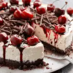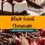 This Black Forest Cheesecake features a chocolate cookie crust, rich and creamy chocolate cheesecake filling, and a vibrant cherry topping. It’s an indulgent dessert that balances deep chocolate flavors with bright, tart cherries—perfect for special occasions or a luxurious treat.