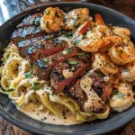 Indulge in the ultimate dining experience with this Blackened Steak and Shrimp Alfredo recipe. With its perfect balance of flavors and textures, it’s guaranteed to become a favorite in your culinary repertoire. Enjoy the fusion of savory steak, succulent shrimp, and creamy Alfredo sauce, all in one unforgettable dish.