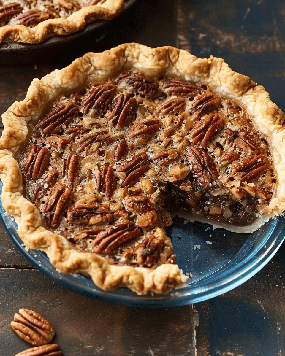 A rich and gooey Southern-inspired pecan pie made with brown sugar, maple syrup, and buttery pecans, perfect for holidays or special occasions.