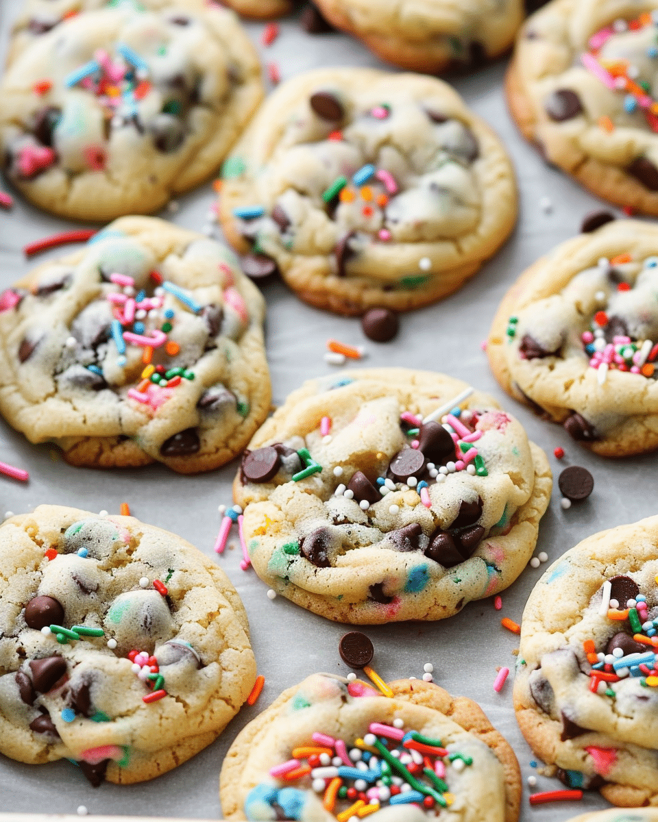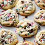 These Cake Batter Chocolate Chip Cookies are a whimsical and delicious treat that combines the best of both worlds. Whether you’re celebrating a special occasion or treating yourself, they’re quick, fun, and sure to impress. Enjoy the soft texture, gooey chocolate, and festive sprinkles in every bite.