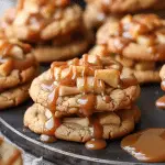 Warm and Fresh: These cookies are best enjoyed fresh and slightly warm, allowing the caramel drizzle to stay gooey. If you’ve made them in advance, reheat each cookie in the microwave for about 10 seconds to revive their soft texture and enhance the flavors.