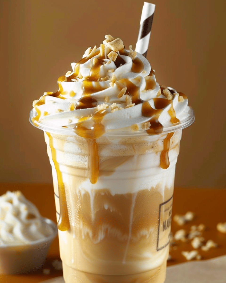 Garnish Galore: Elevate your Caramel Frappuccino presentation by adding a sprinkle of cocoa powder, a dusting of cinnamon, or a drizzle of chocolate syrup on top of the whipped cream.