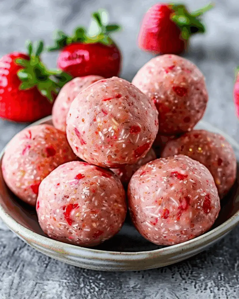 Delicious Strawberry Cheesecake Protein Balls a no-bake, high-protein snack that brings the creamy, fruity flavor of strawberry cheesecake into a …