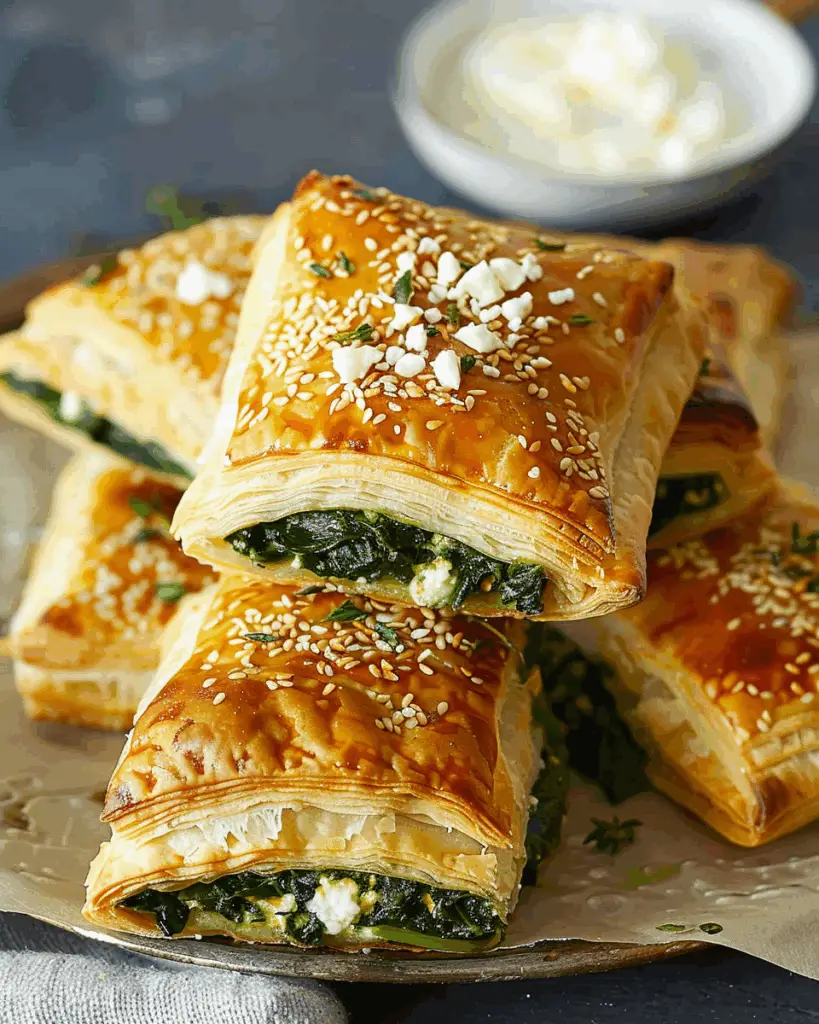 Spinach & Feta Puff Pastry Parcels a flaky, golden puff pastry wraps around a deliciously savory mix of spinach, feta, …