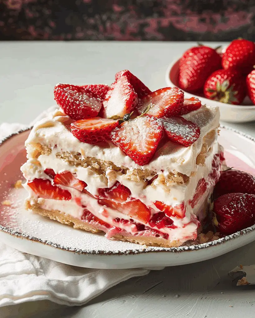 A dreamy no-bake dessert layered with fresh strawberries, fluffy whipped cream, and rich cream cheese, this Strawberry Cream Cheese Icebox …