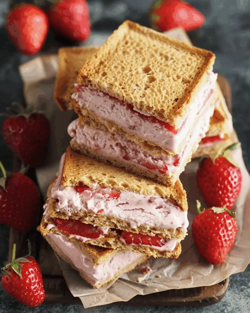 Strawberry Ice Cream Sandwiches a delightfully creamy no-churn strawberry ice cream layered between crisp cookies makes for a sweet and …