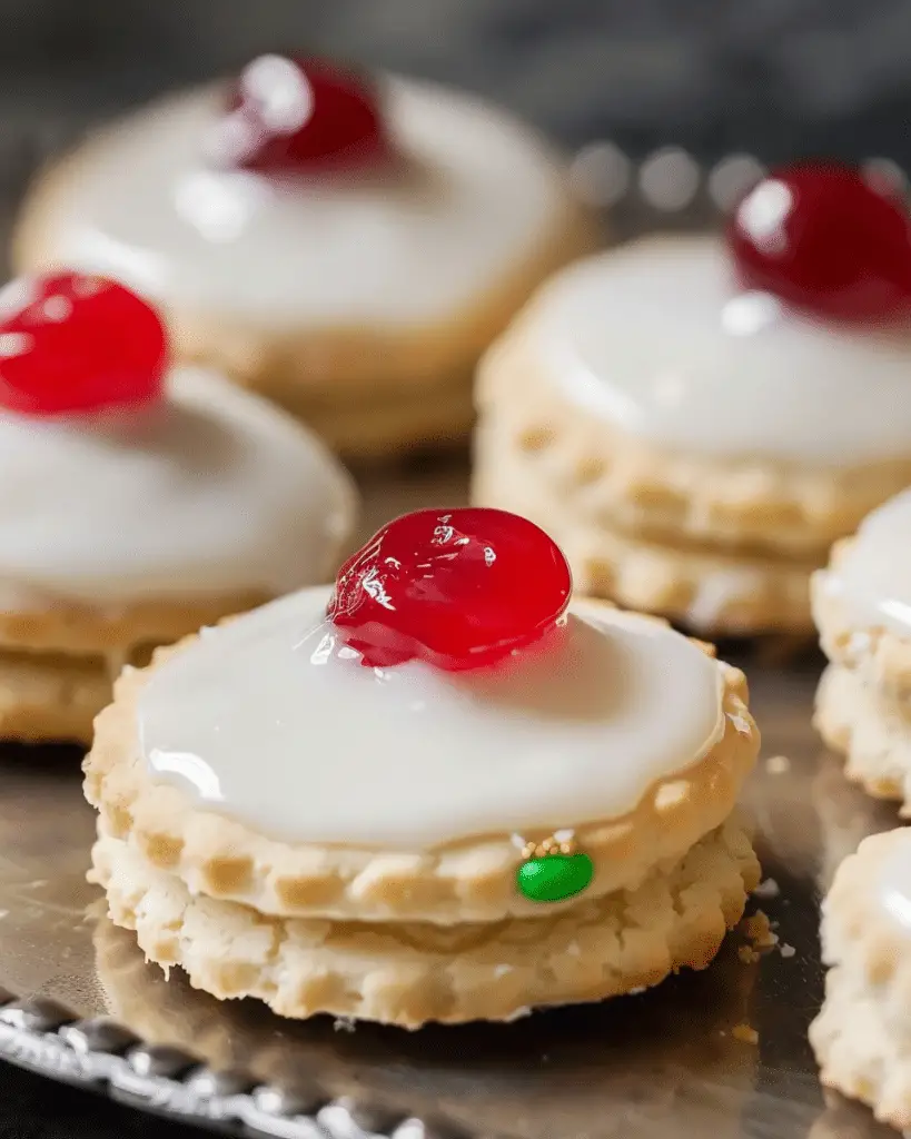 Empire Biscuits a classic buttery biscuits sandwiched with sweet jam, topped with a layer of smooth icing and adorned with …