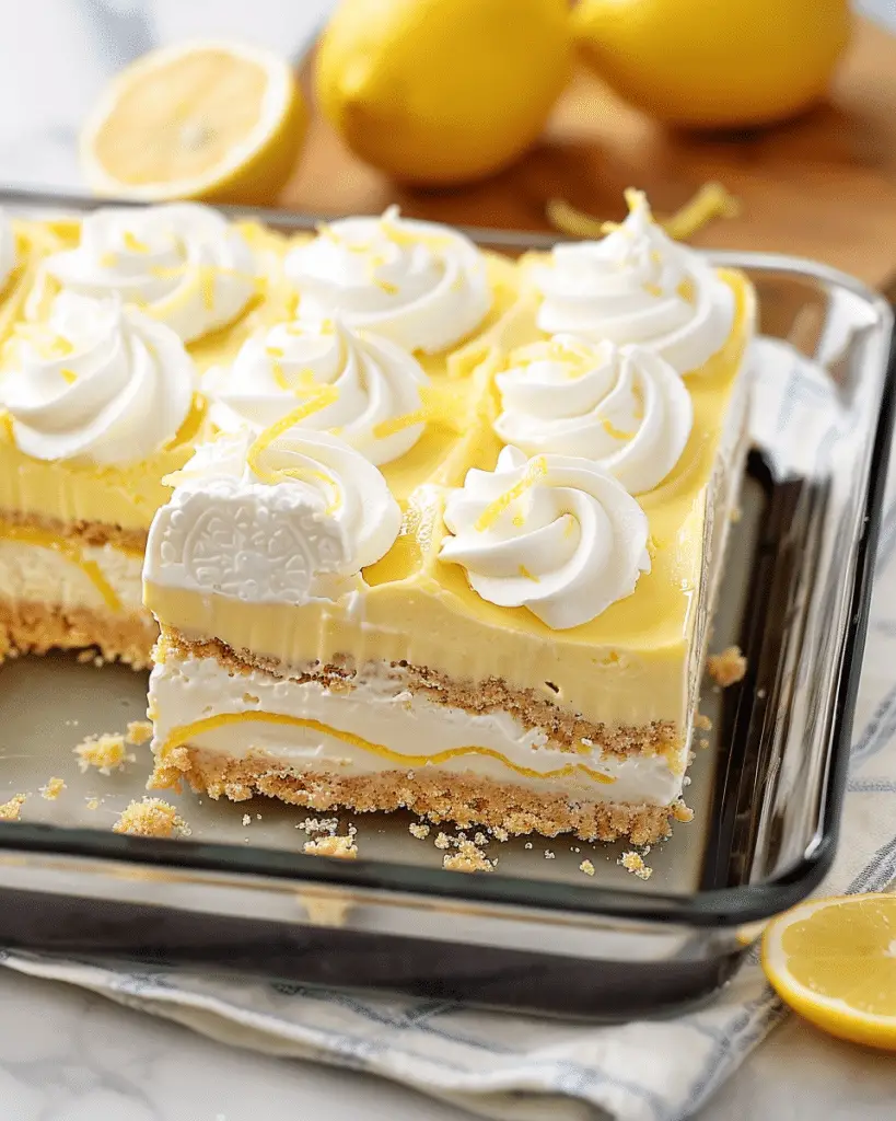 Indulge in the light, tangy delight of the Heavenly Lemon Oreo Dessert, a layered masterpiece featuring a luscious lemon cream on …