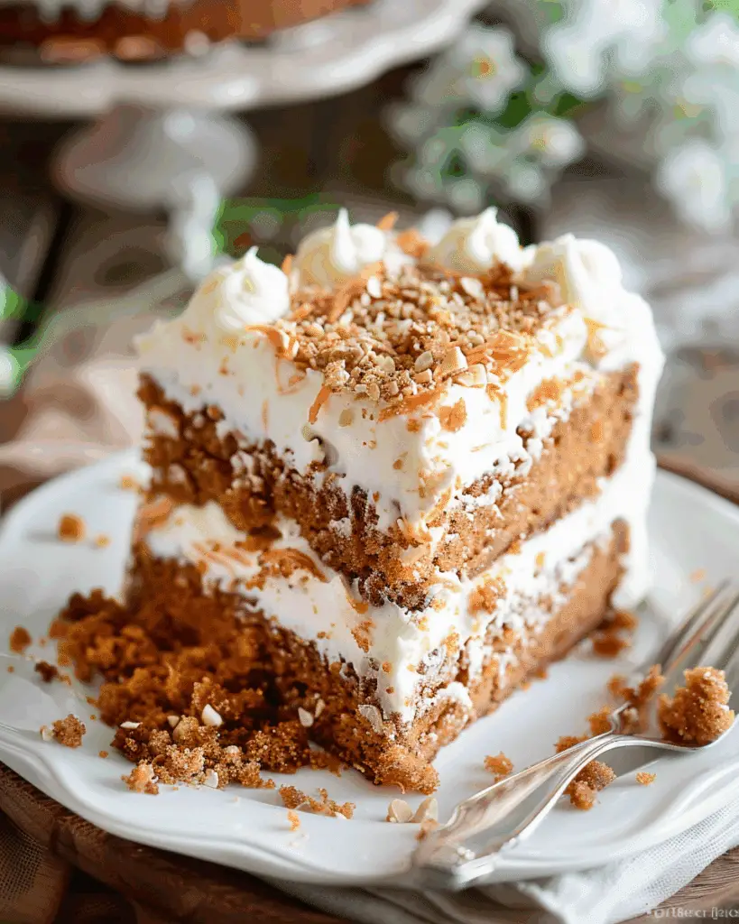 Carrot Cake Poke Cake a moist and spiced carrot cake topped with a creamy, decadent frosting that seeps into the cake …