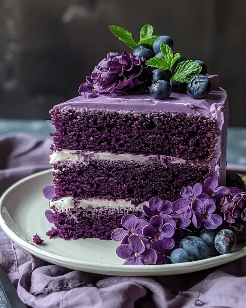 This Purple Velvet Cake with Cream Cheese Frosting is a gorgeous twist on the classic red velvet cake, offering a …
