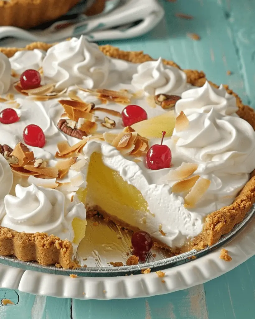 Millionaire Pie a creamy, tropical no-bake pie with pineapple, coconut, and a hint of lemon, perfect for a sweet treat …