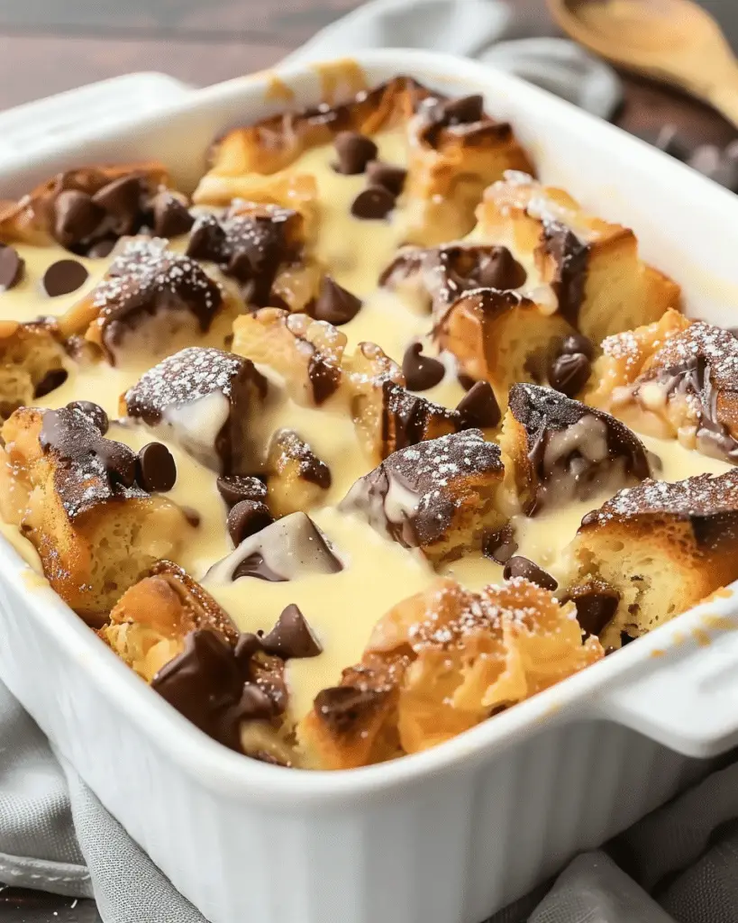 This Chocolate Chip Bread Pudding with Cream Sauce is the ultimate comfort dessert, combining rich, custardy bread pudding with gooey …