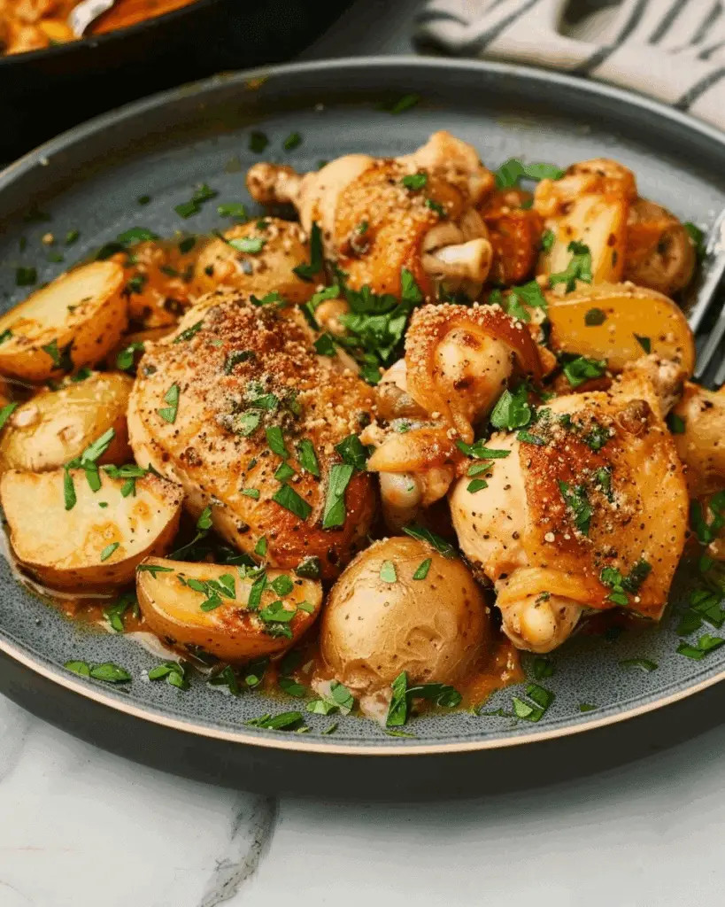 Slow Cooker Parmesan Garlic Chicken and Potatoes a tender chicken and buttery potatoes slowly cooked in a rich garlic parmesan …
