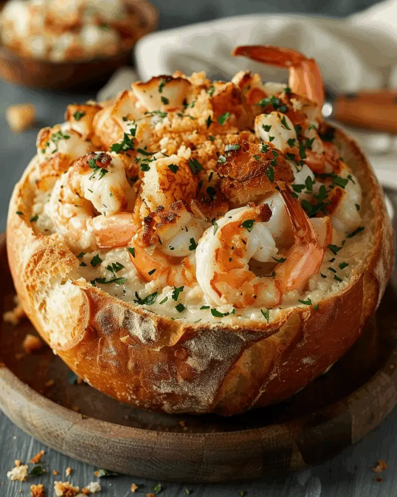 Creamy, savory seafood medley nestled in a crusty sourdough bread bowl — this indulgent Savory Stuffed Seafood Bread Bowl dish brings …