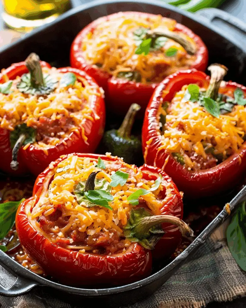 Peperoni Ripieni (Stuffed Peppers) a classic Italian stuffed bell peppers filled with a savory mix of ground beef, rice, herbs, …