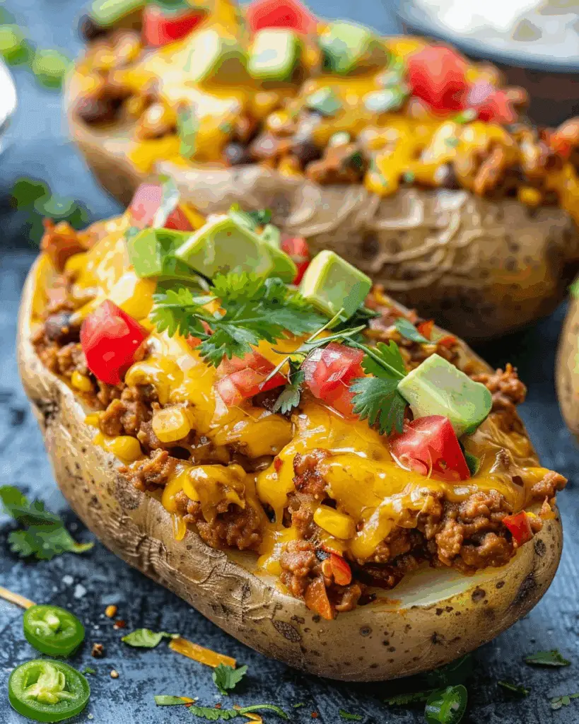 Crispy on the outside and fluffy on the inside, these taco loaded baked potatoes are filled with a savory, seasoned …