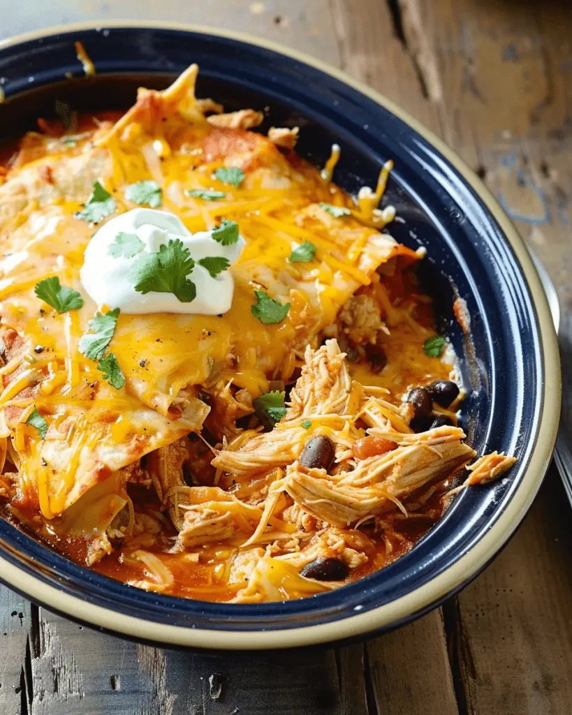 This Cheesy Slow Cooker Chicken Enchilada Bake is an easy, flavorful, and comforting dish made with tender shredded chicken, enchilada …