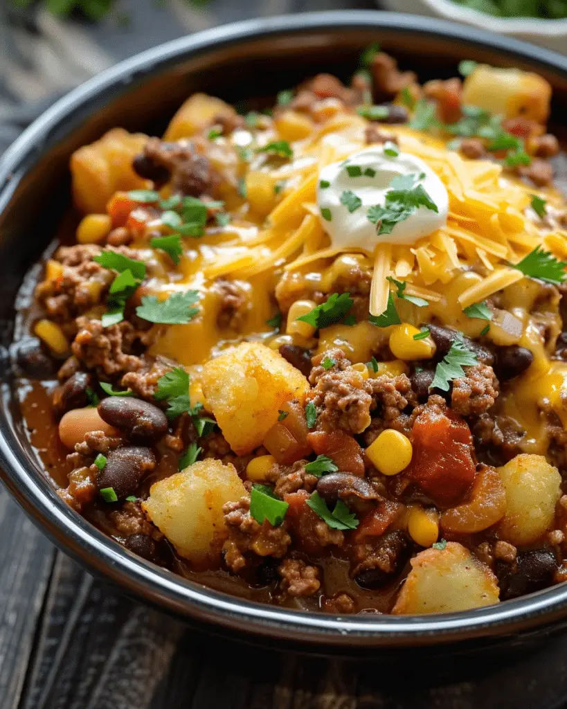 Slow Cooker Cowboy Casserole a hearty and comforting slow cooker dish with layers of ground beef, beans, corn, and cheesy goodness. …