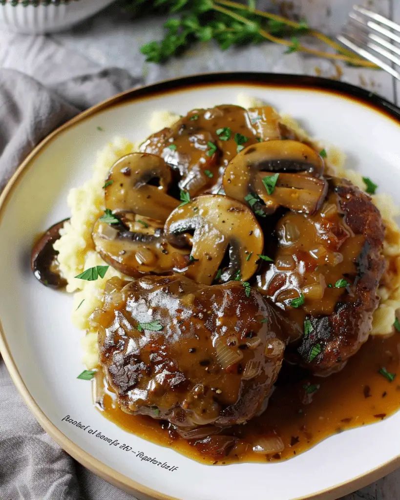 Bobby Flay Salisbury Steak with Mushroom Gravy a Juicy, flavorful Salisbury steak patties topped with a rich mushroom gravy make …