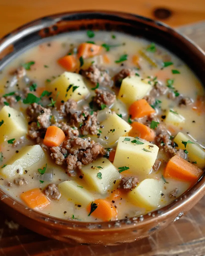 Creamy Potato & Hamburger Soup (Crockpot) is the ultimate comfort food for chilly days. Made with ground beef, tender potatoes, and …