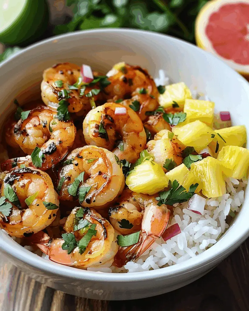 Shrimp & Rice Bowl with Pineapple Salsa a vibrant and fresh dish that combines succulent shrimp with a zesty pineapple salsa …