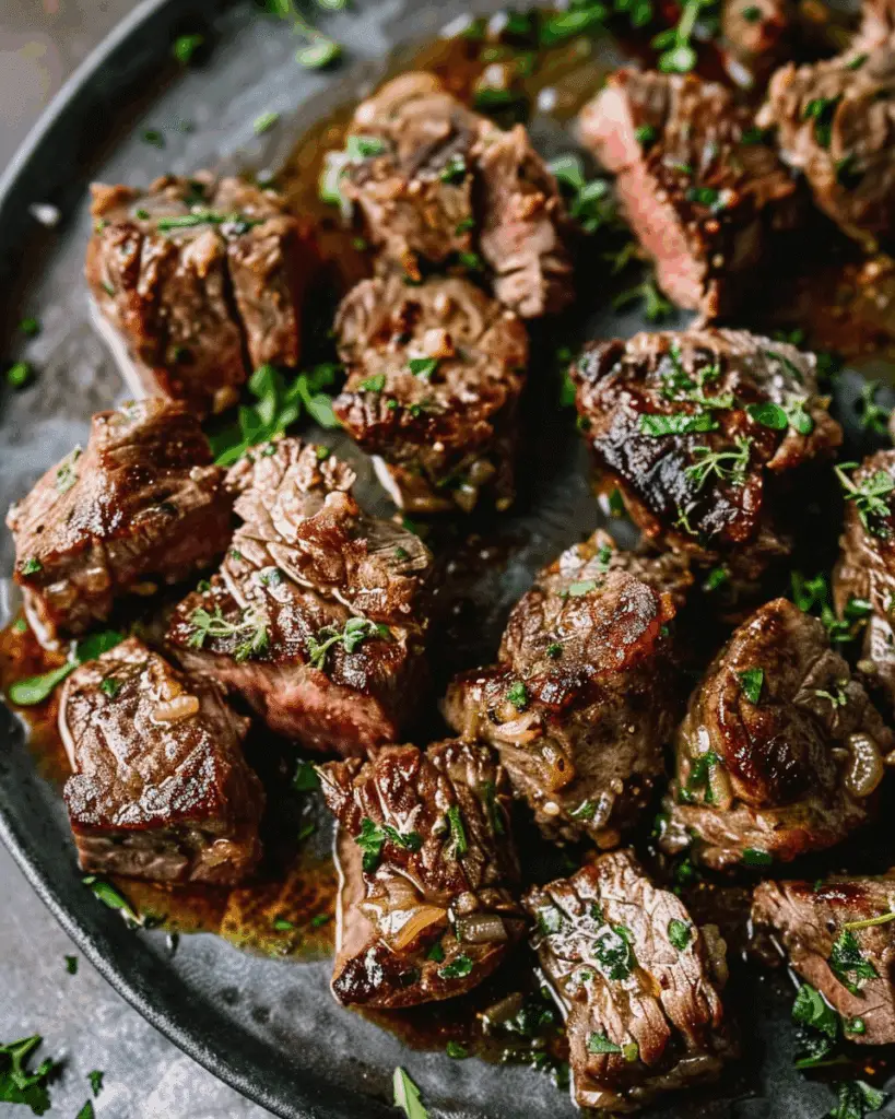 Savory Garlic Butter Steak Bites a juicy, tender steak bites seared to perfection and tossed in a rich garlic butter …