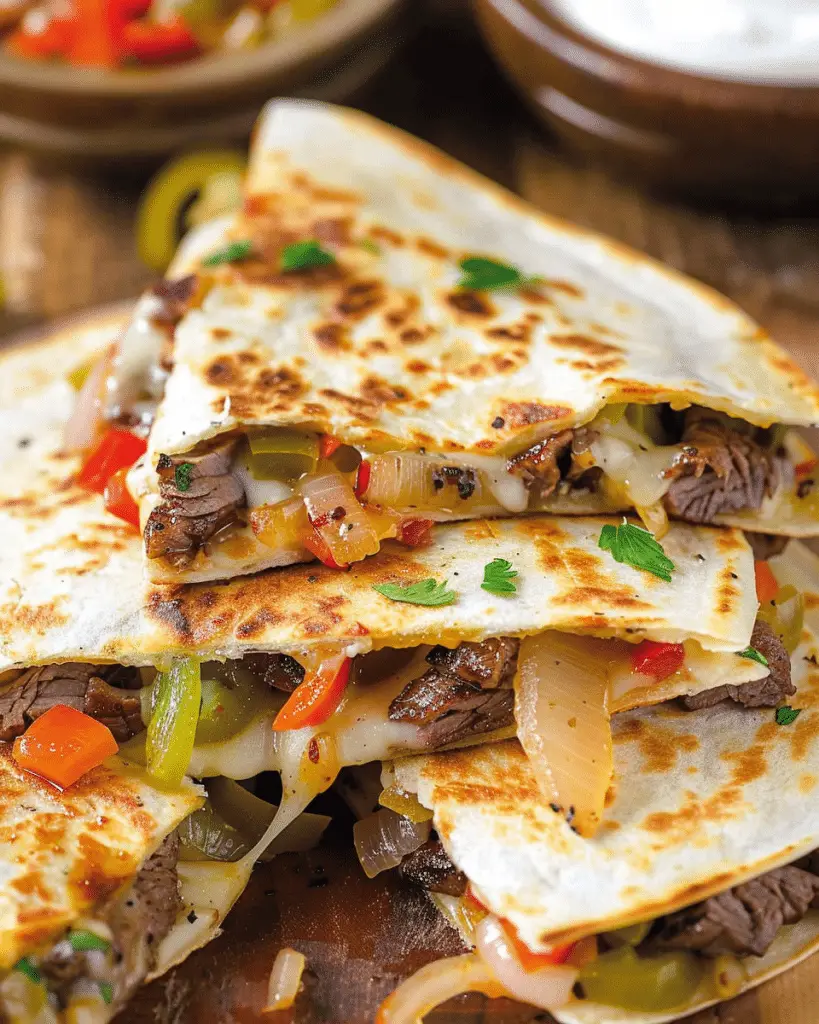 Indulge in the mouthwatering flavors of our Philly Cheesesteak Quesadilla! This delicious fusion combines tender steak, sautéed peppers, and gooey …