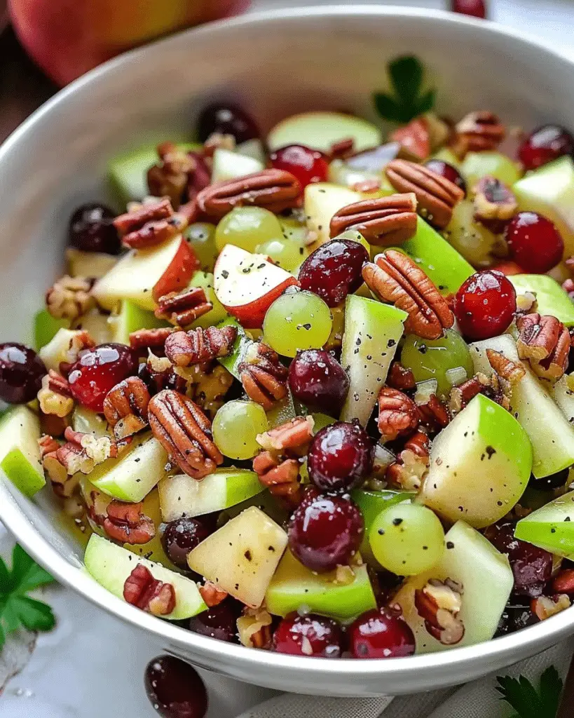 A refreshing blend of sweet Honeycrisp apples, crunchy celery, juicy grapes, nutty pecans, and tart dried cranberries, all tossed in …