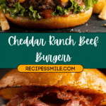 Juicy Cheddar Ranch Beef Burgers made with ground chuck, ranch seasoning, sour cream, and cheddar cheese, perfect for cookouts or easy weeknight dinners. These flavor-packed patties are savory, cheesy, and irresistibly delicious.
