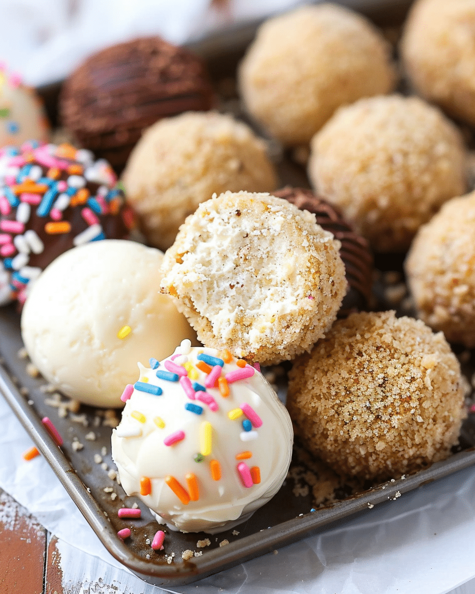 To make cheesecake balls more festive, try using holiday-themed toppings like red and green sprinkles for Christmas, pastel sprinkles for Easter, or crushed candy canes for a winter twist. You can also serve them in cute mini cupcake liners or on a decorative platter to elevate their presentation.