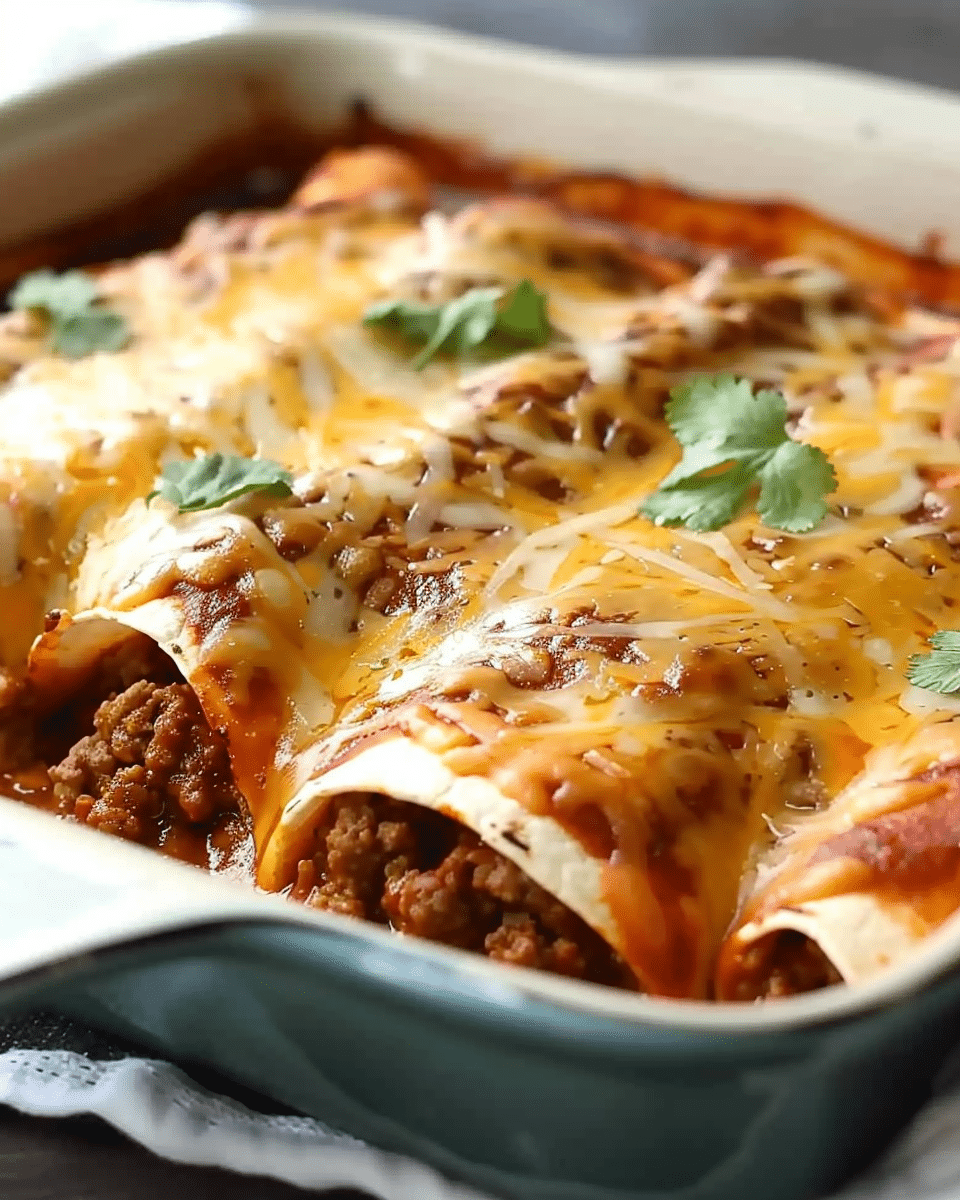 I absolutely love this recipe because it’s so simple to make and packed with flavor. The combination of ground beef, refried beans, and gooey melted cheese is irresistible. The enchiladas are easy to prepare, making them perfect for a busy weeknight dinner, yet they have that comforting, homemade taste that makes every bite feel special. Plus, they’re incredibly customizable—you can adjust the level of spice or add your favorite toppings to make them your own. With minimal ingredients and just a few steps, this dish comes together beautifully for a satisfying meal!