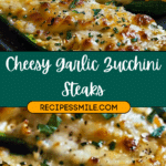 These Cheesy Garlic Zucchini Steaks are a flavorful and healthy side dish featuring tender zucchini topped with a blend of melted mozzarella and Parmesan cheese. Infused with aromatic garlic and a hint of red pepper flakes, this dish is perfect for any meal and is sure to be a hit at your dinner table.