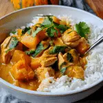 I absolutely love this recipe because it brings together the richness of coconut milk, the savory flavor of chicken, and the earthy sweetness of pumpkin, creating a harmonious and satisfying meal. The red curry paste adds just the right amount of spice without overwhelming the other flavors. It’s a one-pot meal, which makes clean-up a breeze, and the combination of chicken and pumpkin makes it both hearty and comforting. Plus, it’s incredibly easy to make, perfect for a busy weeknight or a relaxed weekend dinner.