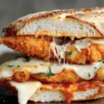 I make this Chicken Parmesan Sandwich whenever I crave something crispy, cheesy, and deeply comforting. I layer a golden, crunchy chicken cutlet with rich marinara sauce and perfectly melted mozzarella, then tuck it all into a warm, toasted roll. Every bite feels hearty, satisfying, and packed with classic Italian-inspired flavors.