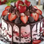 If you’re looking for a show-stopping dessert that combines the richness of chocolate with the refreshing taste of strawberries, look no further than this Chocolate Covered Strawberry Ice Cream Cake. Perfect for birthdays, special occasions, or simply as a sweet indulgence, this cake features layers of moist chocolate cake and creamy strawberry ice cream, all topped with a glossy chocolate ganache and fresh strawberries.