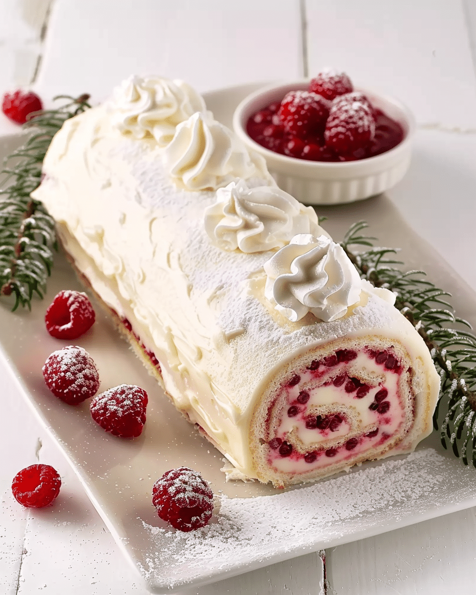 This Christmas Raspberry Cake Roll is a festive and visually stunning dessert that combines a light, airy sponge cake with a vibrant raspberry filling and a fluffy whipped cream topping. Perfect for adding a fruity twist to your holiday table, this dessert is sure to delight family and guests alike. With its lovely colors and balanced sweetness, it’s an ideal centerpiece for your Christmas spread.