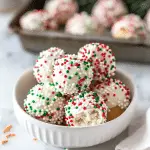 - Dip in Chocolate: Melt the white chocolate wafers, then dip the chilled truffles in the melted chocolate using a fork. Place them back on the baking sheet and add sprinkles before the chocolate sets.