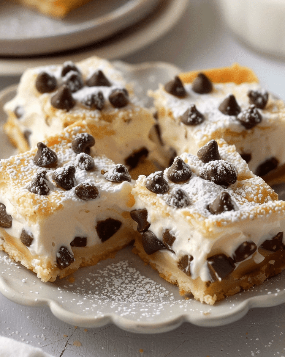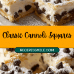 Classic Cannoli Squares offer all the rich, creamy flavor of traditional Italian cannoli in an easy-to-make baked dessert. A sweet ricotta and chocolate chip filling is layered between two flaky pie crusts, making this a perfect treat for gatherings or cozy nights in.