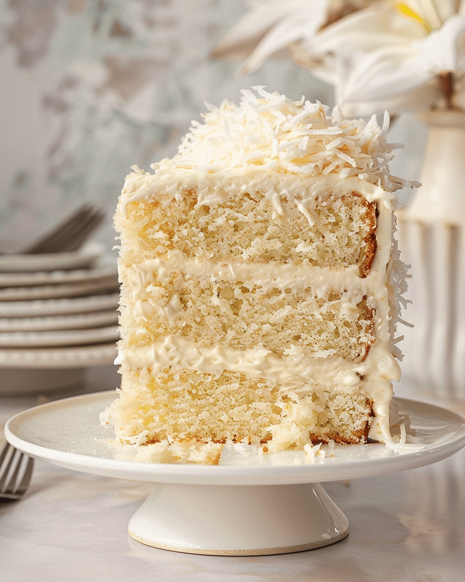 Fluffy, moist, and full of tropical flavor, this coconut cake with cream cheese frosting is a perfect balance of sweet coconut and tangy cream cheese. Ideal for celebrations or casual gatherings alike.
