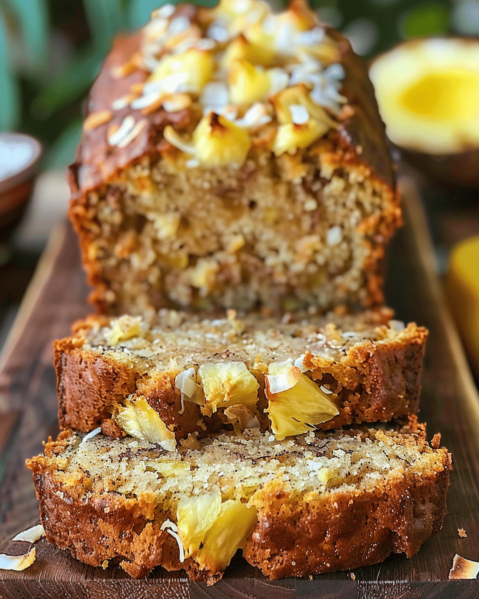 This Coconut Pineapple Banana Bread has quickly become one of my favorite baked goods, thanks to its tropical flavors and moist, tender texture. It’s an easy recipe that brings a taste of the tropics to any occasion. Whether I’m enjoying it with my morning coffee or serving it as a snack to guests, it’s always a hit. Give it a try, and I’m sure it’ll become a new favorite in your baking repertoire too!