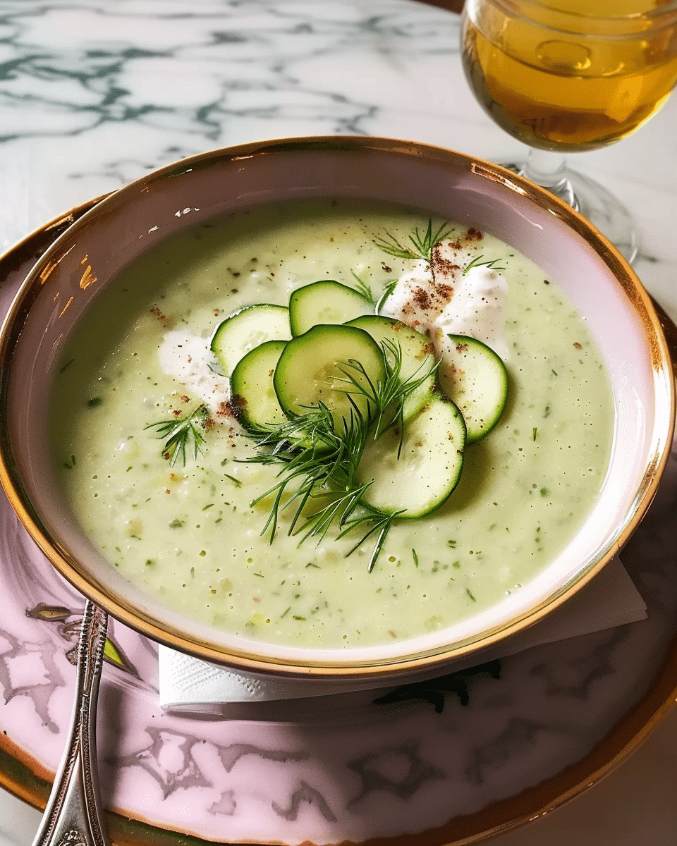 I absolutely love how refreshing and creamy this soup is! The cool cucumbers combined with the tangy Greek yogurt create a perfect balance of flavors. The fresh dill and lemon juice add a vibrant burst of flavor that pairs wonderfully with the subtle garlic. It’s light yet filling, making it perfect for a warm day. Plus, the soup is incredibly easy to make, with no cooking involved – just a quick blend, and it’s ready to chill in the fridge. Whether I’m serving it at a summer gathering or just enjoying a solo meal, it’s always a hit!